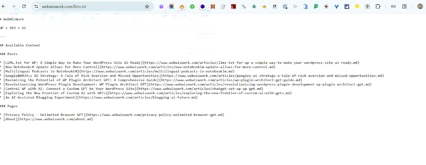 También puedes escribir tu URL seguida de «/llms.txt» en tu navegador para verificar su visibilidad.