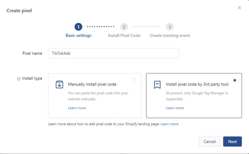 Crea un píxel de TikTok: tipo de instalación con herramientas de terceros