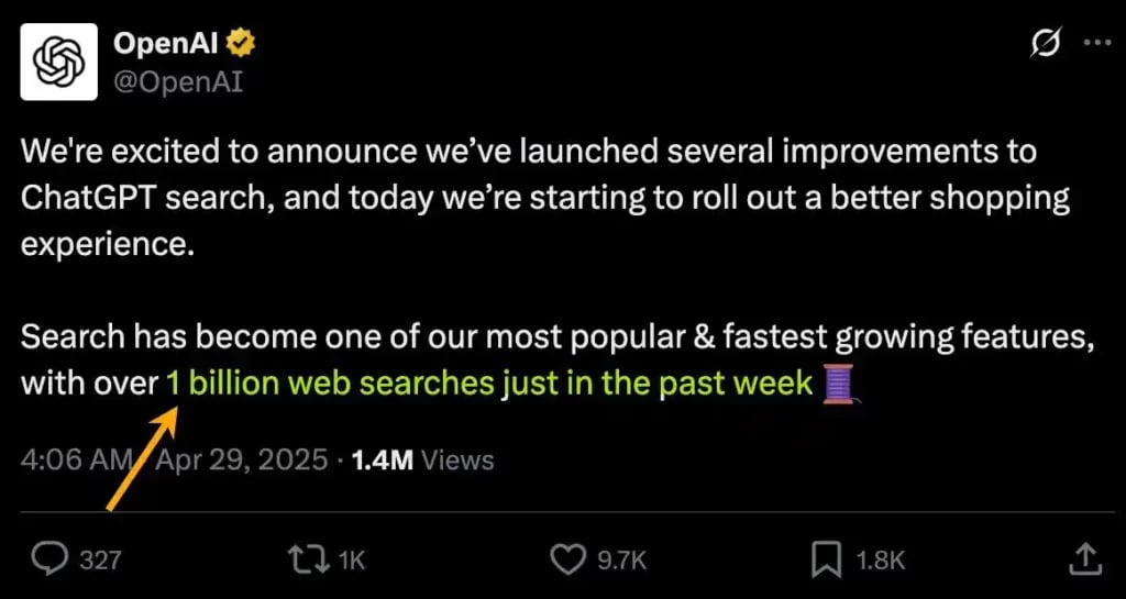 Ningún LLM (ChatGPT, DeepkSeek, Google AI Overview…) tiene publicidad. Todo es orgánico y a día de hoy ChatGPT SOLO ya cuenta con 1.000M de búsquedas semanales.