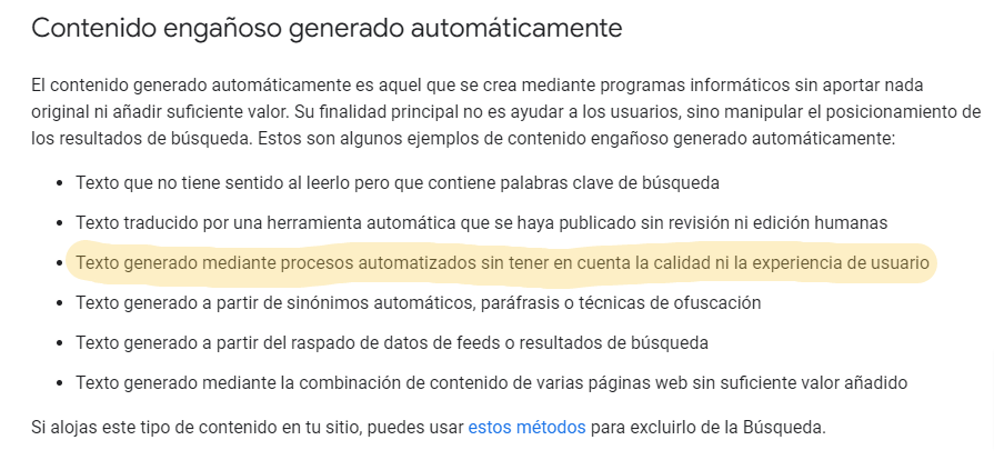 Although less clear in this respect, it is true that mention of the “Markov Chains” used by some AIs has been removed and the emphasis has been placed on the quality of content and user experience.