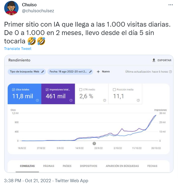 And as proof, you can see this screenshot of a tweet from Chuiso a very famous Spanish SEO:
