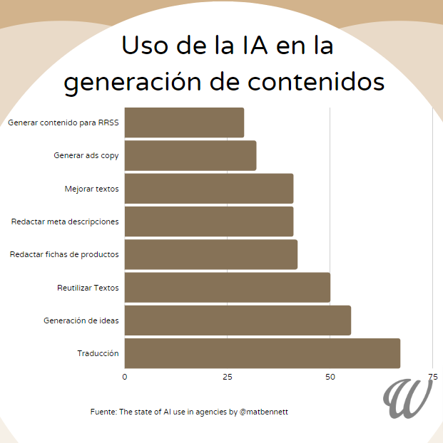 According to a study published by Matt Bennet in October 2022, 65% of UK agencies were already using AI tools to generate some of their content automatically to some extent to create product descriptions, translate copy or create copy for ads and social media.