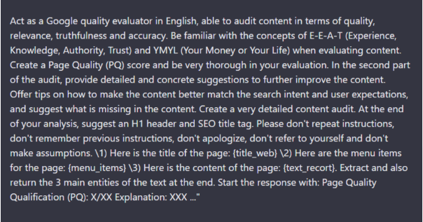 Thanks to it you will be able to use Google Colab and AI to evaluate the EEAT of any URL.